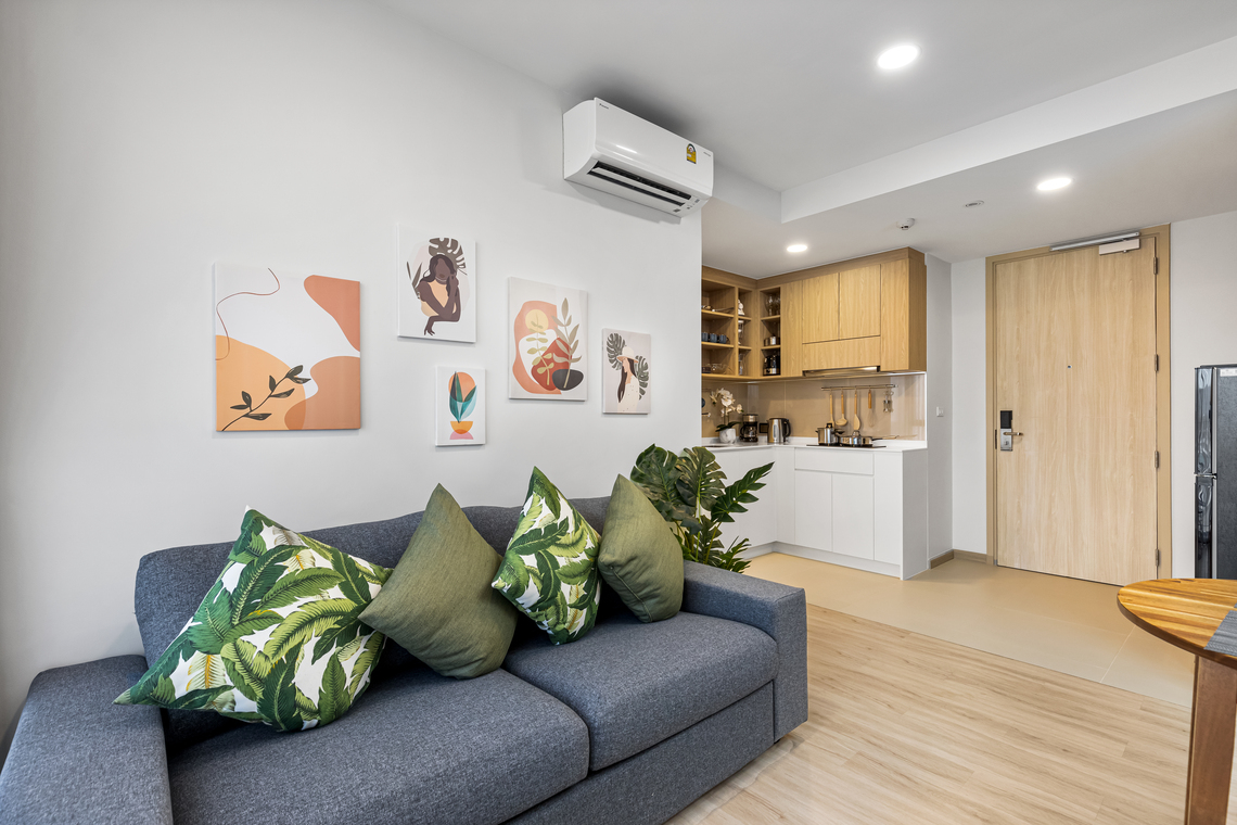 Совсем свежие-новые, после ремонта, дизайнерские апартаменты в 10 мин. от пляжа Банг Тао (Bang Tao), в новом же комплексе Скайпарк (Skypark).